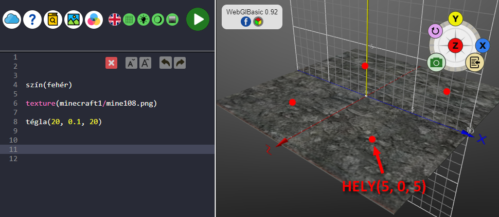Most a padlóra 4 db minecraft kockát fogunk rajzolni. Ehhez meg kell határozni a rajzolás helyét!