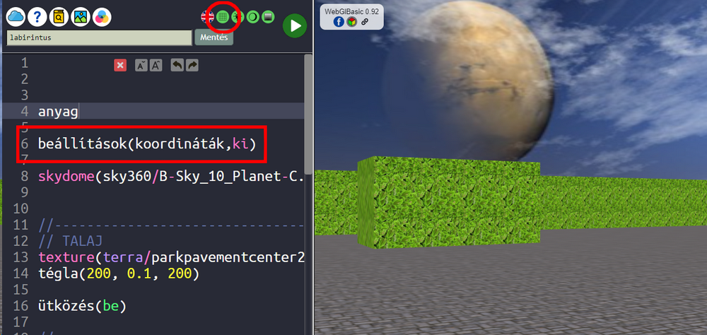 Végül érdemes a koordináta segédrácsot kikapcsolni. Ezt a felső gombbal, vagy a kódba beírt paranccsal is meg lehet tenni.
