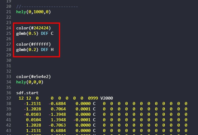 Szintén fontos az is, hogy az SDF utasításon belül sehol sem legyen üres sor!