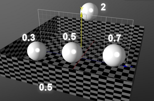 RUGALMASSÁGAz ütközést befolyásolja a test rugalmassága. Ezt a test kódja előtt kell beállítani. Valóságos szimuláció esetén 0..1 közötti szám legyen. A példában minden gömb más rugalmasságot kapott. A hátul lévő gömb minden ütközéskor egyre magasabbra ugrik, mert a rugalmassága 1-nél nagyobb. Ne feledjük, hogy a padlónak, vagyis a doboznak is van rugalmassága!