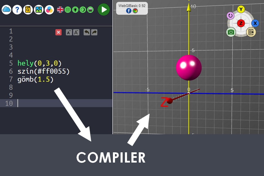 A webglbasic nyelvet kifejezetten gyerekeknek találtam ki. A célom az volt, hogy nagyon egyszerű, magyar nyelvű utasításokkal tudjanak 3D tartalmat előállítani. Ismerjék meg a 3D modellezés alapjait, és képesek legyenek egyszerű testeket elhelyezni a 3D térbe.