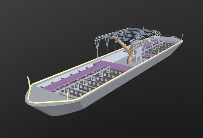 A modellt fényképek alapján Blenderrel rajzoltam, majd OBJ fájl formátumban került a WEBGLBASIC forrásba.