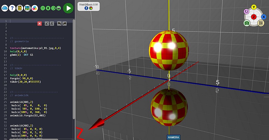 WebGlBasic nyelven megírod a 3D tartalom kódját. Nincs értelme a háttér, a kamera, és az interaktív utasításoknak, mivel a kamerával csak passzív nézők leszünk. A tárgyak animálása sem mindig jó ötlet, mivel pont az a cél, hogy a felhasználó mozogjon a virtuális tárgyak körül.