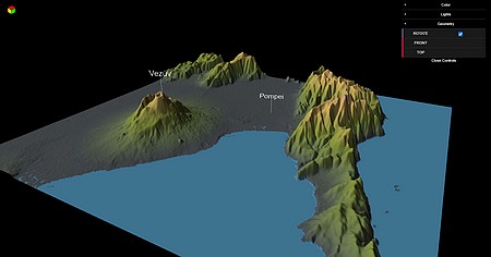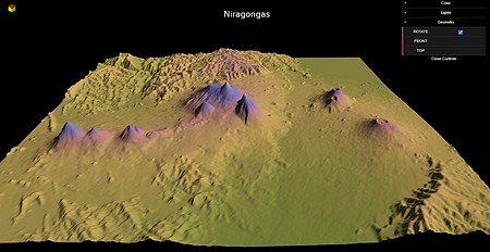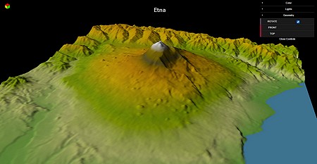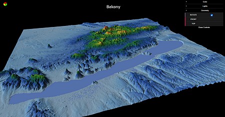 Minden HGT fájl 1x1 fokos területet fed le. Adatkonverzió után készítettem a következő 3D modelleket. A képernyő jobb felső sarkában a lenyitható menüben dinamikusan lehet változtatni néhány paramétert, többek között az Y nyújtást is. Ez utóbbival megnövelhető a domborzat magassága.