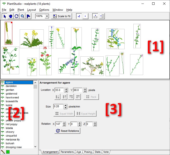 Ezek nagy része valós növények modellezése, de vannak kitalált változatok is. A program több mint 200 paraméterrel generálja a lágyszárú növényeket, virágokat. A rengeteg paraméter ismertetése lehetetlen feladat lenne, érdemes kísérletezni, illetve az egyszerűbb varázsló programot futtatni.