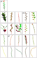2. Move through the breeder double-clicking on a plant in each generation. If you don’t like any of the plants in a generation, double-click on a plant in the previous generation to get different plants. Choose something you want to select for – say you want a tall skinny plant (like the example here), or a plant with lots of flowers, or a very short plant – and in each generation choose the plant that best meets your selection criterion.