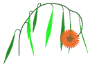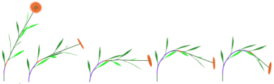 For the inflorescence, lets do something more interesting. Select the inflorescence in the same way you did the internodes, by clicking on it, and then click the Pose button. Now change its rotation in more than one dimension. Use the three dimensions together to make the flower head sort of turn around and look at you, like this: