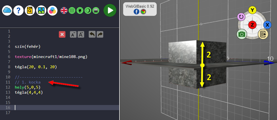 - A kódszerkesztőben a kurzort helyezd a TÉGLA utasítás elé!