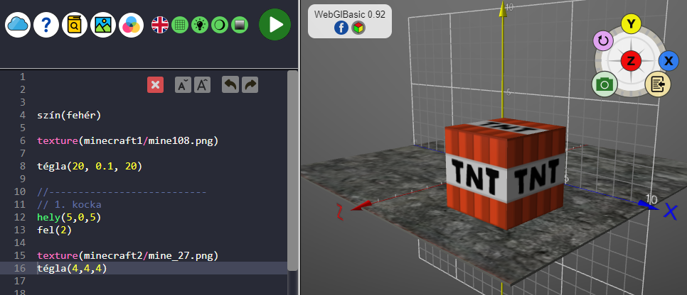 Természetesen a TÉGLA utasítás elé be kell illeszteni egy másik textúrát, hogy ne legyen azonos a padló textúrájával. A TNT textúra a Mine4 kategóriában van.