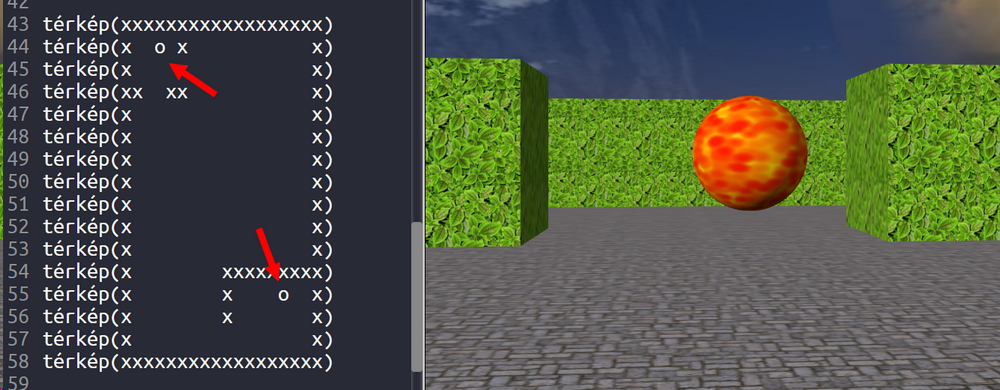 A karakteres térképen az o betűvel tudunk gömböket elhelyezni.