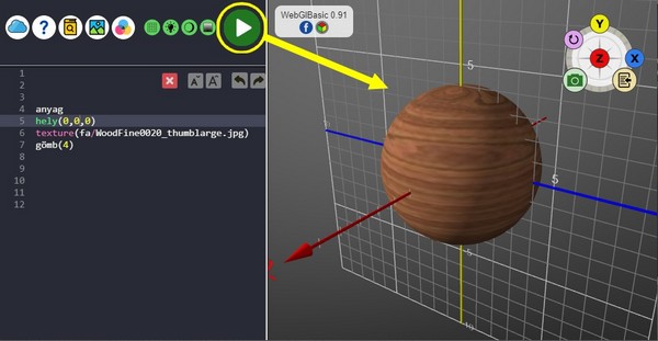 WebGlBasic nyelven megírod a 3D tartalom kódját. Nincs értelme a háttér, a kamera, és az interaktív utasításoknak, mivel a kamerával csak passzív nézők leszünk. A tárgyak animálása sem mindig jó ötlet, mivel pont az a cél, hogy a felhasználó mozogjon a virtuális tárgyak körül.