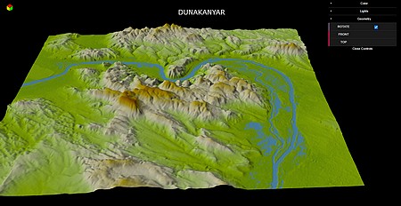 Minden HGT fájl 1x1 fokos területet fed le. Adatkonverzió után készítettem a következő 3D modelleket. A képernyő jobb felső sarkában a lenyitható menüben dinamikusan lehet változtatni néhány paramétert, többek között az Y nyújtást is. Ez utóbbival megnövelhető a domborzat magassága.