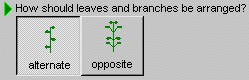 2. Now we want to start making choices for our Black-eyed Susan. Under the question “How should leaves and branches be arranged?”, click on the large button labeled alternate. For each question in the wizard, the button with your choice is “pushed in”. Try clicking the opposite button and then the alternate button again – you see how it works?