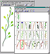 2. Move through the breeder double-clicking on a plant in each generation. If you don’t like any of the plants in a generation, double-click on a plant in the previous generation to get different plants. Choose something you want to select for – say you want a tall skinny plant (like the example here), or a plant with lots of flowers, or a very short plant – and in each generation choose the plant that best meets your selection criterion.
