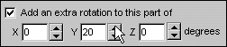4.        A whole bunch of check boxes and things will appear in the Posing panel, and the internode will turn red. Now check the box labeled Add an extra rotation to this part of, then move the Y rotation number up or down by clicking on the little arrows next to it, like this: