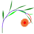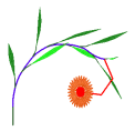 For the inflorescence, lets do something more interesting. Select the inflorescence in the same way you did the internodes, by clicking on it, and then click the Pose button. Now change its rotation in more than one dimension. Use the three dimensions together to make the flower head sort of turn around and look at you, like this: