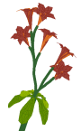This parameter causes pedicels (flower stems) to taper as they approach the flower or fruit 3D object, so that the intersection of stem and 3D object looks more natural. For no tapering, set this index to 100%; for tapering, lower the index. Tapering works only on the screen and in DXF output; it doesn’t work for POV output. Tapering looks best in 2D output when there are more line segments per line (change the parameter General parameters: Number of segments to draw to create curved line). If your inflorescence stems are already thin, you won’t be able to see much tapering.